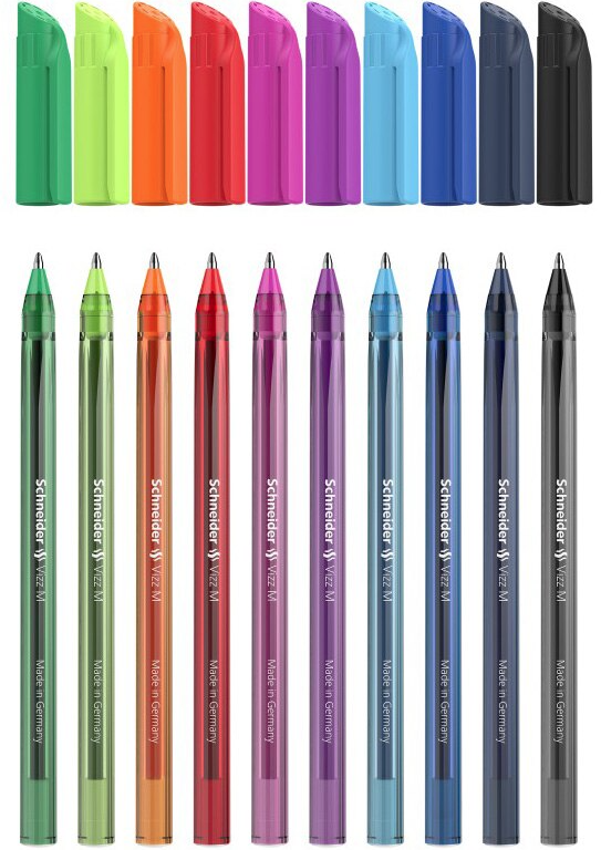 • Setul de 10 pixuri Vizz conține următoarele culori: negru, roșu, albastru, verde, portocaliu, violet, roz, bleu, vernil, bleumarin