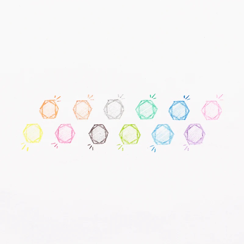 Set de 12 creioane colorate care se pot stivui în nenumărate moduri. Au corpul translucid în formă de pietre prețioase.