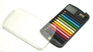 Set 12 creioane colorate mici cu radiera si ascutitoare