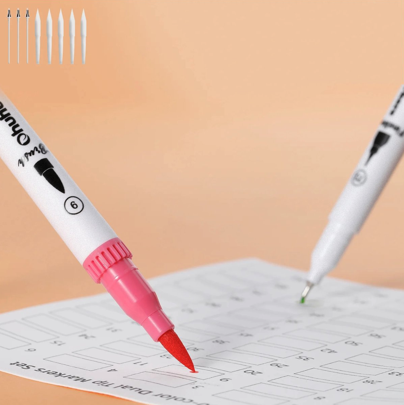 Descoperă creativitatea fără limite cu acest set complet de 160 de markere Ohuhu Maui, pe bază de apă, cu două capete: un vârf tip pensulă pentru linii fluide, umbre și detalii expresive, și un vârf fin pentru contururi precise, scris de mână și desen tehnic.