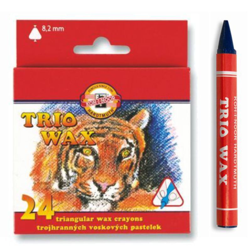 Creioane color cerate, 24 culori, Trio Wax Koh-I-Noor ideale pentru copii, deoarece creionul este protejat de un invelis de hartie.
