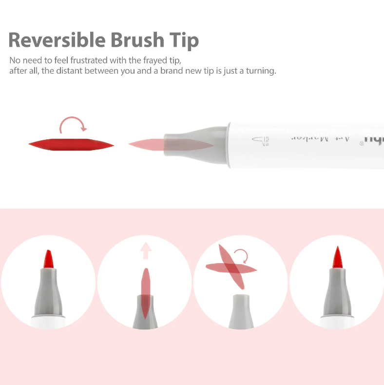 • Două vârfuri. Lărgiți-vă orizonturile artistice cu designul markerului cu două vârfuri!