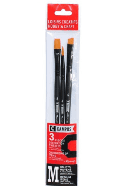 Setul Campus Hobby M contine 3 pensule cu maner scurt ce se preteaza la pictura in culori acrilice, tempera, guase sau acuarele. Pensulele au marimi medii avand forme diferite: o pensula rotunda, una lata si una oblica.