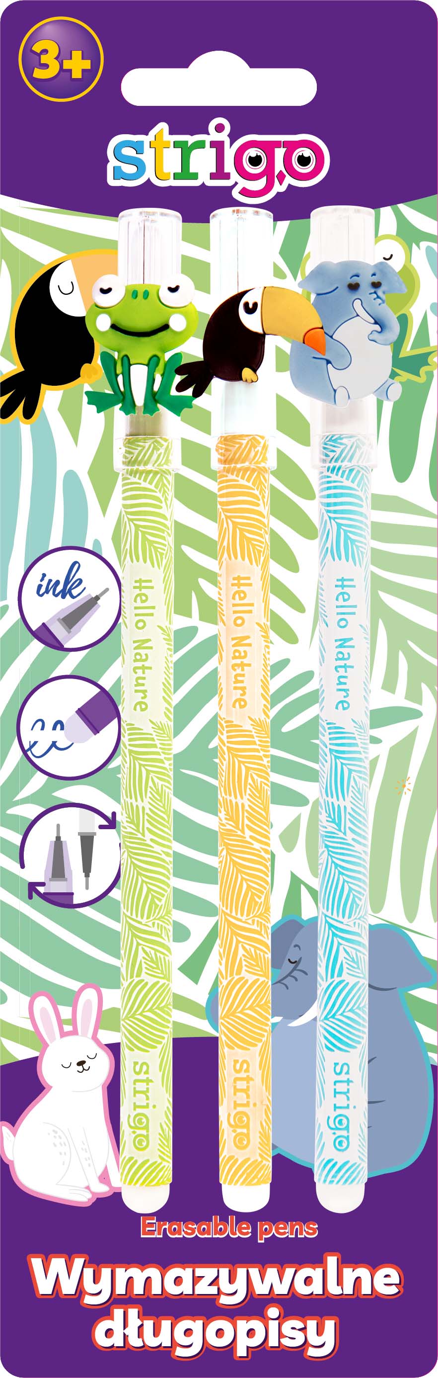 Set de 3 pixuri cu cerneală termosensibilă. Sunt prevăzute în capătul superior cu o radieră specială.