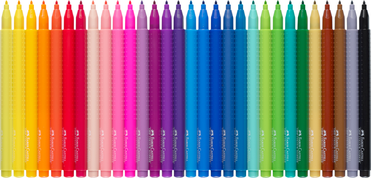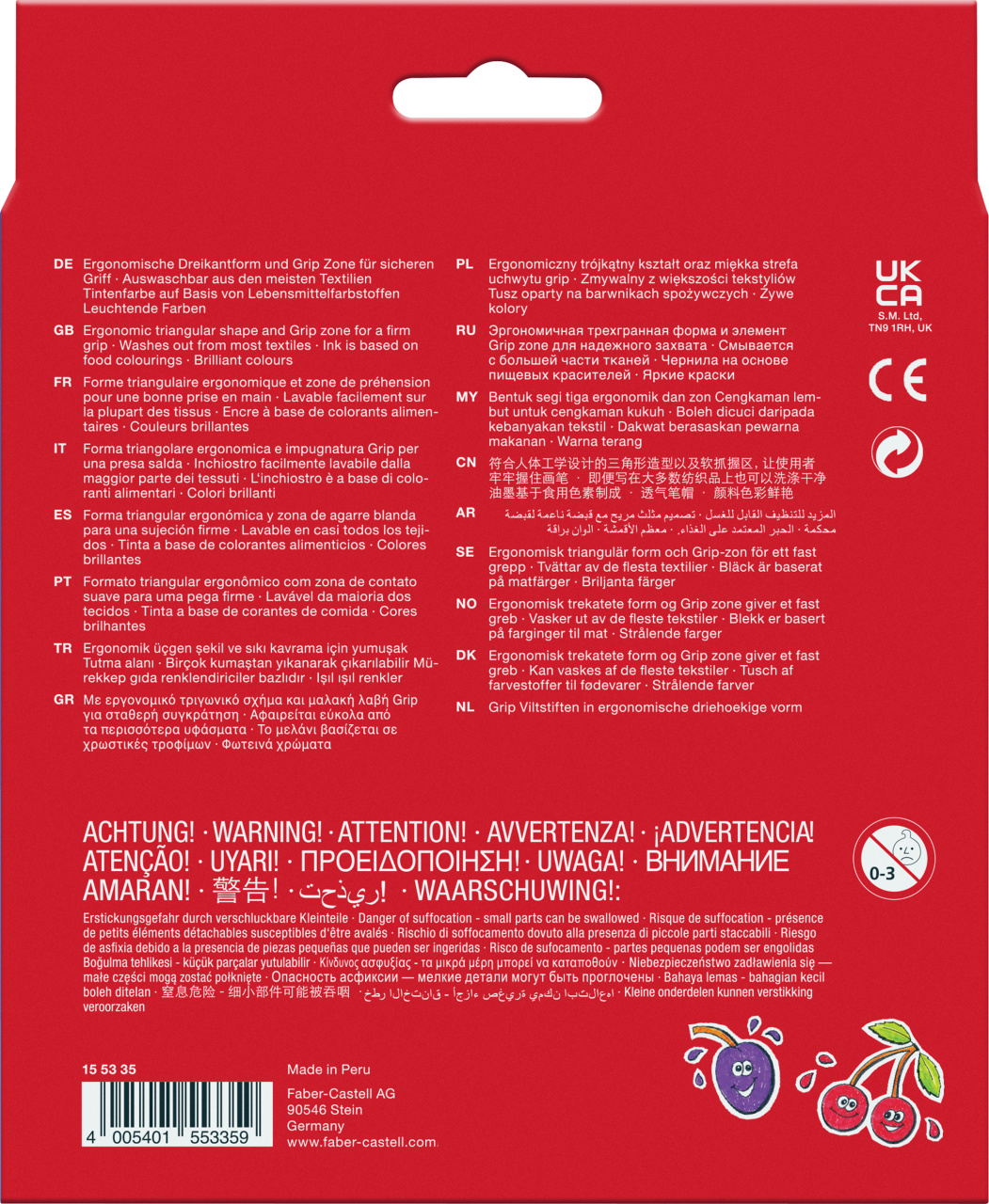 Forma ergonomica triunghiulara, pentru o folosire usoara. Zona anti-alunecare patentata GRIP, cu mici puncte de masaj. Varf rezistent la presiune crescuta. Cerneala pe baza de apa si substante naturale. Culorile pot fi curatate de pe majoritatea tesaturilor. Culori luminoase si expresive.