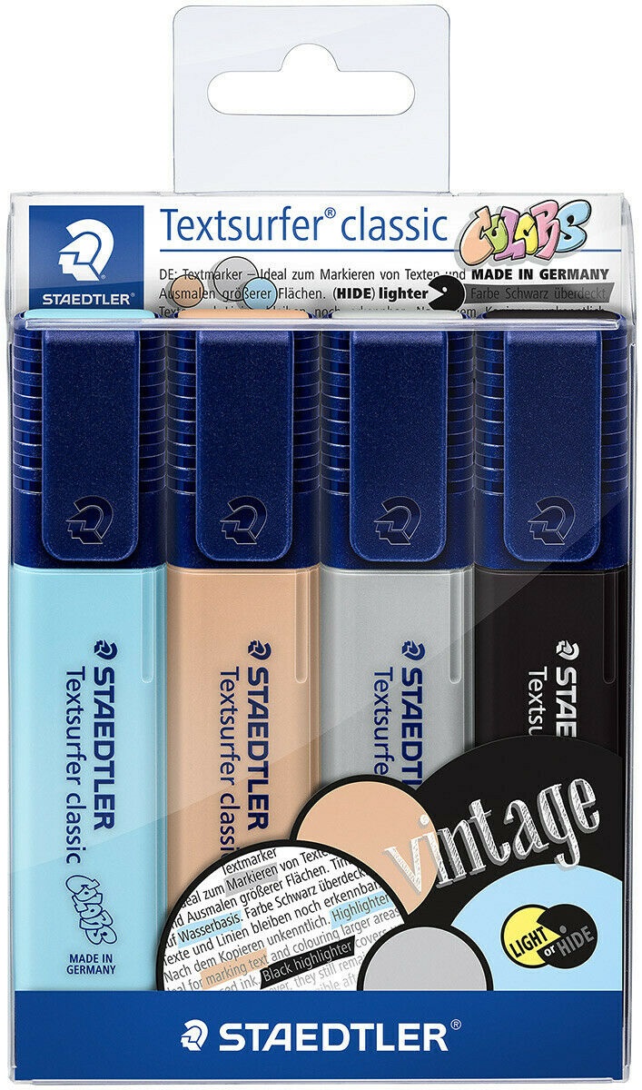 Set 4 highlightere cu rezervor amplu de tuș pe bază de apă, cu uscare rapidă.