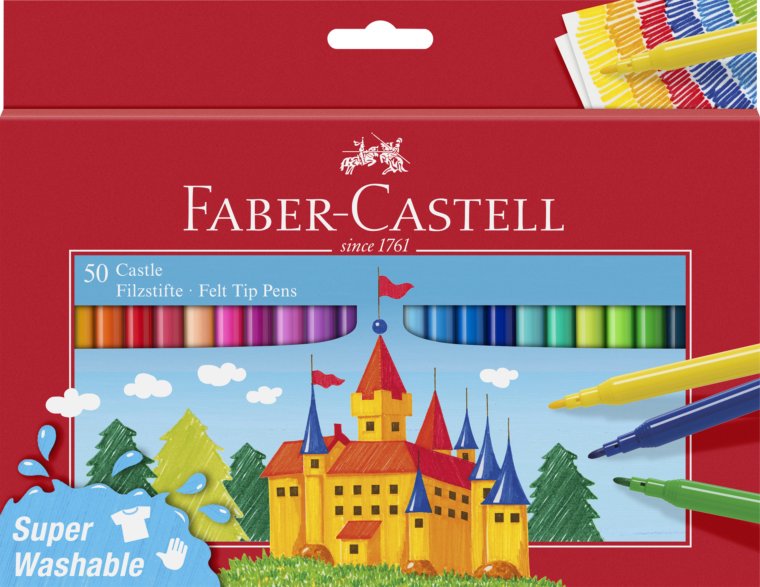 Carioci cu forma rotunda. Varf subtire. Capac ventilat. Cerneala pe baza de apa si substante naturale. Culorile pot fi curatate de pe majoritatea tesaturilor. Set cu 50 culori.