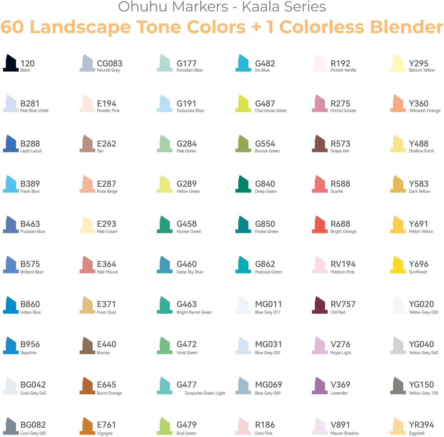Set 60 markere - Ohuhu Kaala - Broad & Fine Landscape Tones de la brandul Ohuhu.