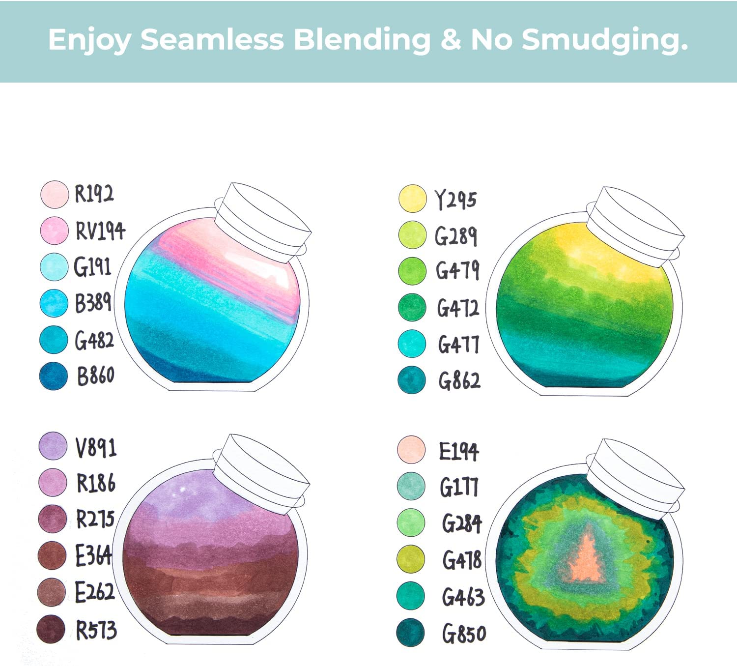 - Blending uniform. Uită de colorarea cu pete, neuniformă. Cerneala de înaltă calitate se amestecă perfect pentru a obține efecte frumoase de colorare, chiar și pentru începători.