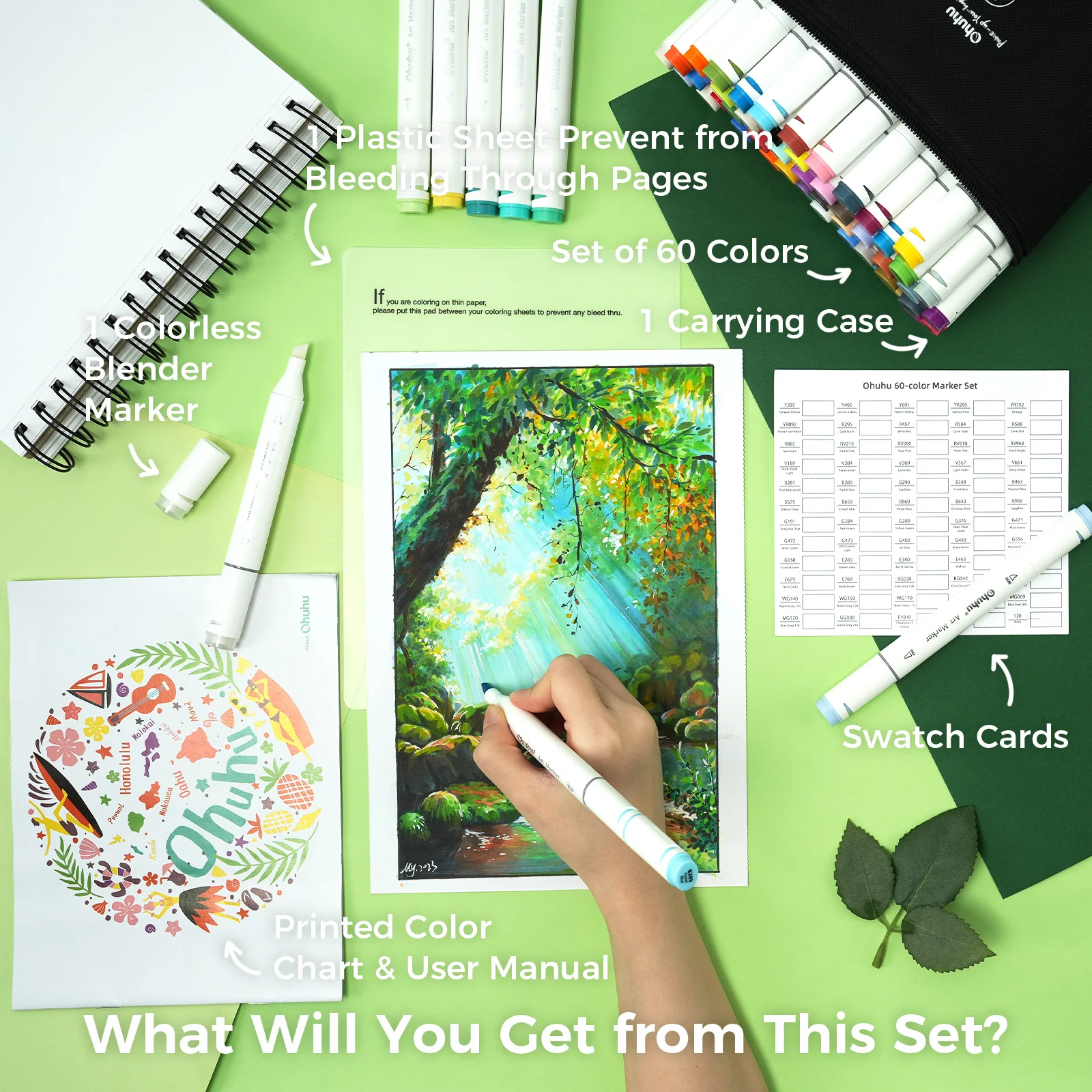 Brand-ul Ohuhu își ia inspirația din culorile vibrante hawaiiene. Când începi să desenezi cu instrumentele de scris de la Ohuhu, poți simți căldura soarelui exotic.
