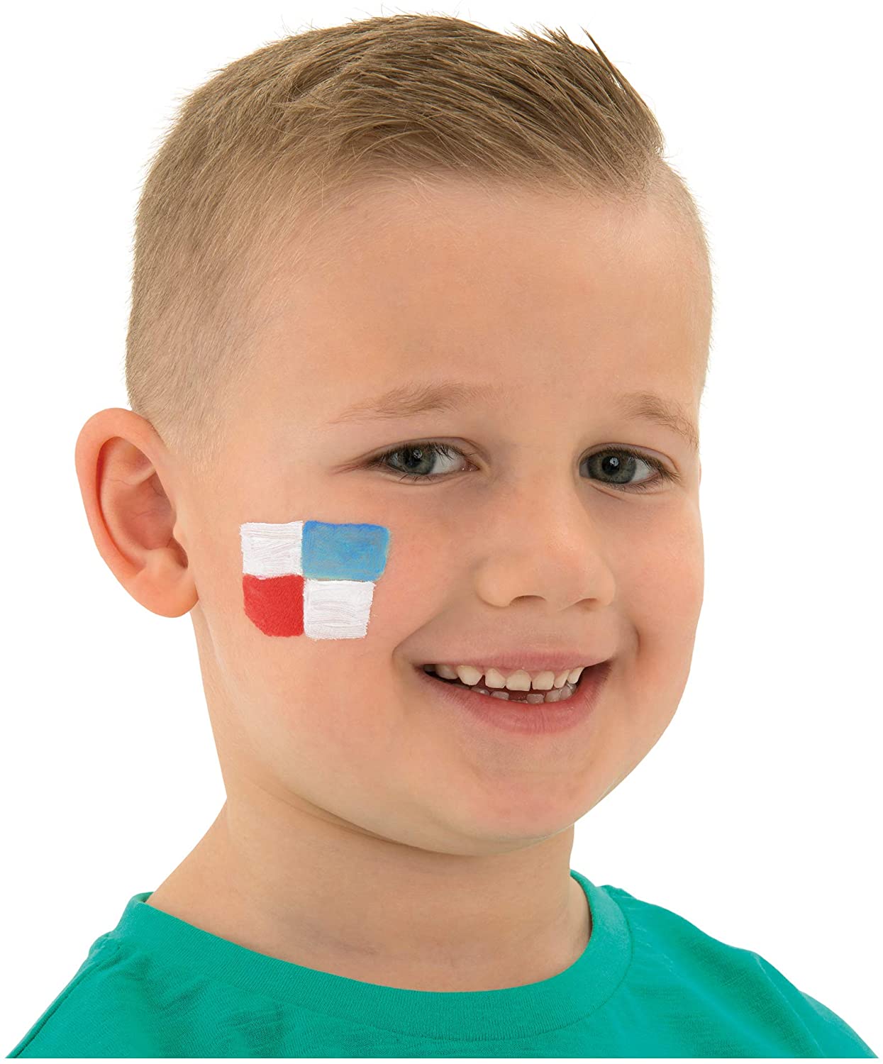 Set de 8 culori pentru față, în recipiente de plastic. Ideale pentru petreceri costumate, discotecă sau evenimente sportive.