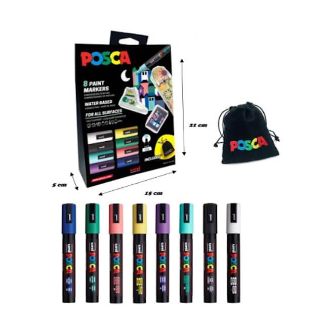 dauga un strop de magie sarbatorilor tale cu Setul 8 markere Posca, editie speciala de Craciun. Acest set contine 8 markere acrilice pe baza de apa, in culori vibrante, ambalate impreuna cu un saculet textil reutilizabil, ideal pentru a-ti organiza markerele. Markerele Posca sunt cunoscute pentru capacitatea lor de a picta pe orice suprafata, de la hartie si carton pana la sticla, metal sau ceramica, fiind un instrument esential pentru decoratiuni, postere, afise sau proiecte de bricolaj.