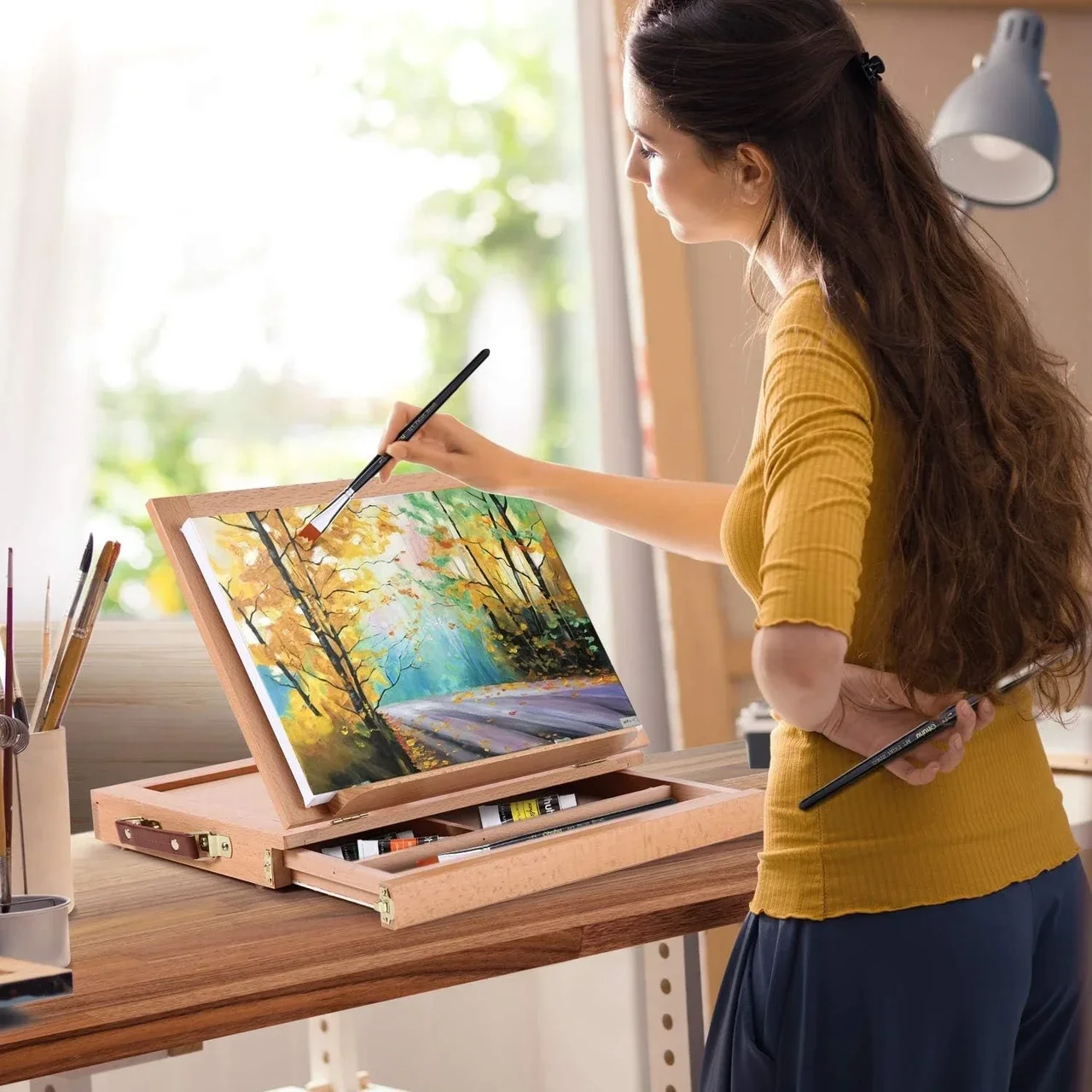 SET COMPLET DE 78 DE PIESE: Ce este inclus in acest kit complet? Veti gasi tot ce aveti nevoie in acest set complet de pictura de 78 de piese, inclusiv 48 de vopsele acrilice, 1 cutie de sevalet de masa din lemn, 3 panouri de panza pentru pictura, 2 panze intinse, 1 paleta de culori din plastic, 15 pensule cu varf fin, 1 pensula cu varf lat, 5 spatule, 1 carte de pictura acrilica, 1 cromatografie. Nu conteaza daca esti destul de nou in pictura sau ai facut-o de ani de zile - toata lumea va beneficia de acest kit de arta all-inclusive.