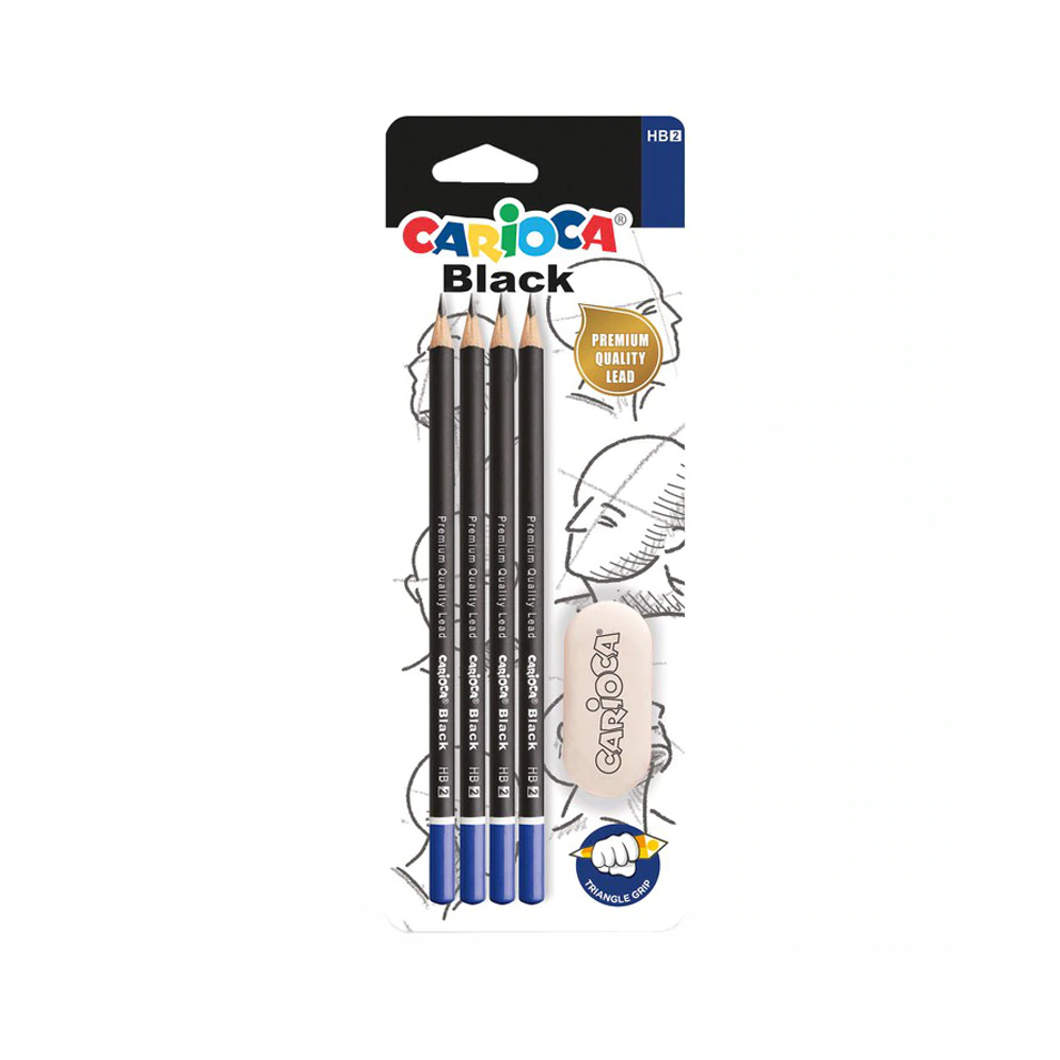Setul include 4 creioane cu duritate HB si o radiera CARIOCA.