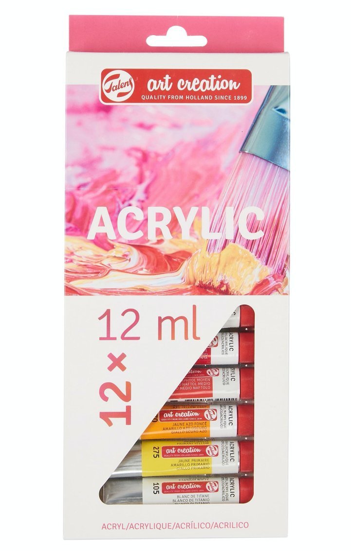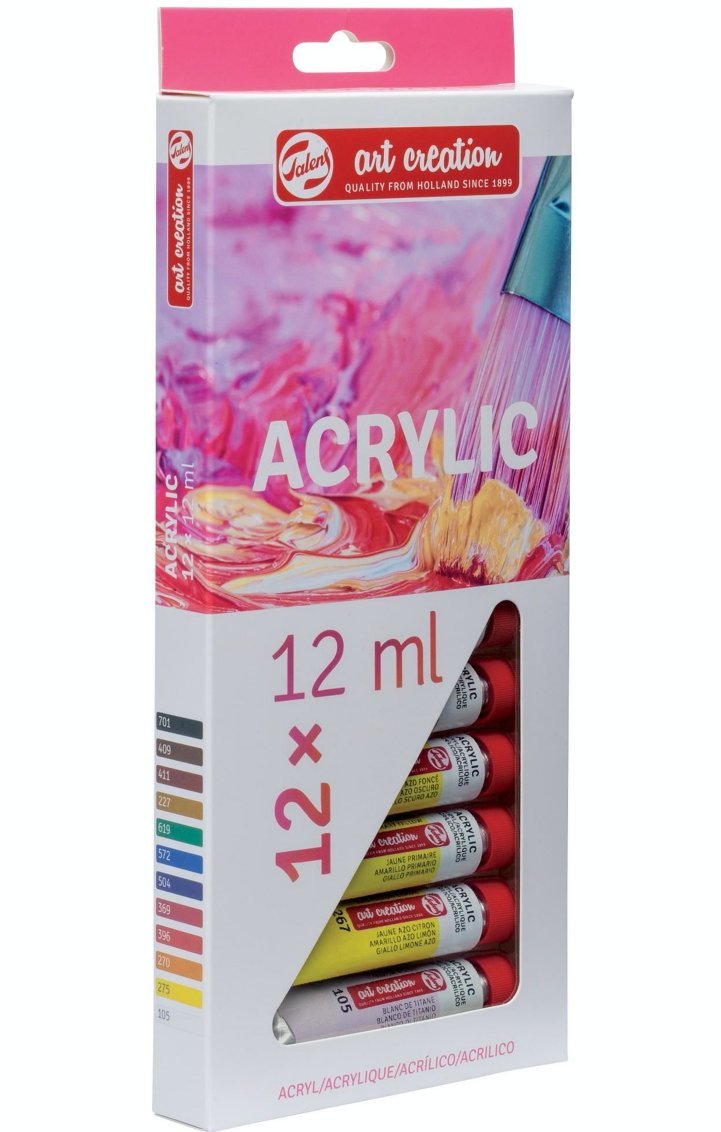 Culoarea acrilică Talens Art Creation este o vopsea acrilică de încredere, de calitate, pe bază de rășină acrilică. Vopseaua are o consistență cremoasă, se usucă rapid și are un luciu mătăsos când este uscată. Aceste culori acrilice pot fi folosite atât direct din tub, cât și diluate cu apă și sunt rezistente la apă atunci când sunt uscate. Culorile sunt ușor de amestecat între ele și ușor de utilizat datorită capacului de dozare.