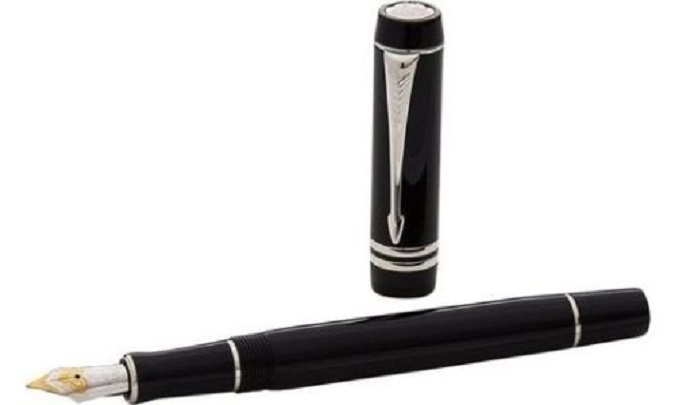 Un simbol al excelenței din 1921, Duofold rămâne cel mai distins stilou din descendența discernătoare a lui Parker. Condus de angajamentul față de măiestria superioară, fiecare detaliu al stiloului Parker Duofold Classic Black Centennial Size este gândit și executat cu atenție. Fabricat manual, acest stilou numerotat individual are un butoi solid din rășină prețioasă, neagră, catifelată, cu ornamente contrastante cu finisaj paladiu. Penita bi-tonală din aur masiv de 18 carate, împodobită , este acoperită cu străluciri rodiu și creează linii precise și impecabile pentru a asigura cea mai bună experiență de scriere. Duofold Classic vine într-o cutie de cadou de lux Parker.
