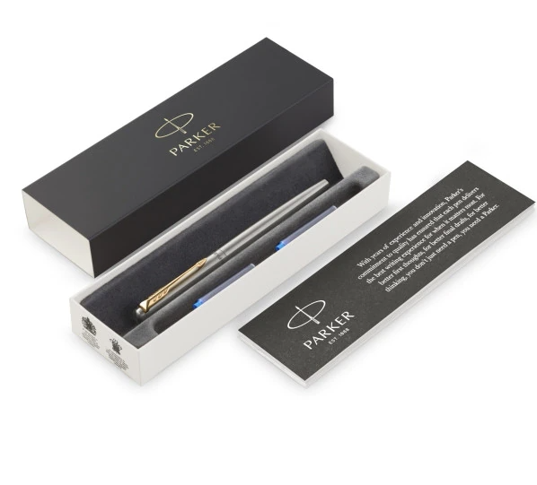 Jotter reprezinta fara niciun dubiu un "click de scris si semnat" inconfundabil in patrimoniul Parker. Nu ezitati sa faceti din Jotter un cadou practic si apreciat prietenilor sau celor apropiati. De asemenea nu ezitati sa va faceti pentru dumneavoastra din Jotter, un prieten care sa va inspire si sa va insoteasca neconditionat zi de zi in ale scrisului.