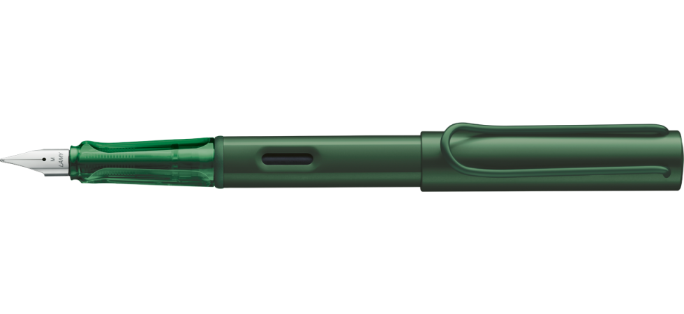 Detalii stilou Lamy AL-star pine: aluminiu anodizat autumn pine / clip metalic / grip din plastic ergonomic / penita de otel, slefuita / patroane cerneala Lamy T10 / convertor compatibil Lamy Z28 / NU include convertor Z28