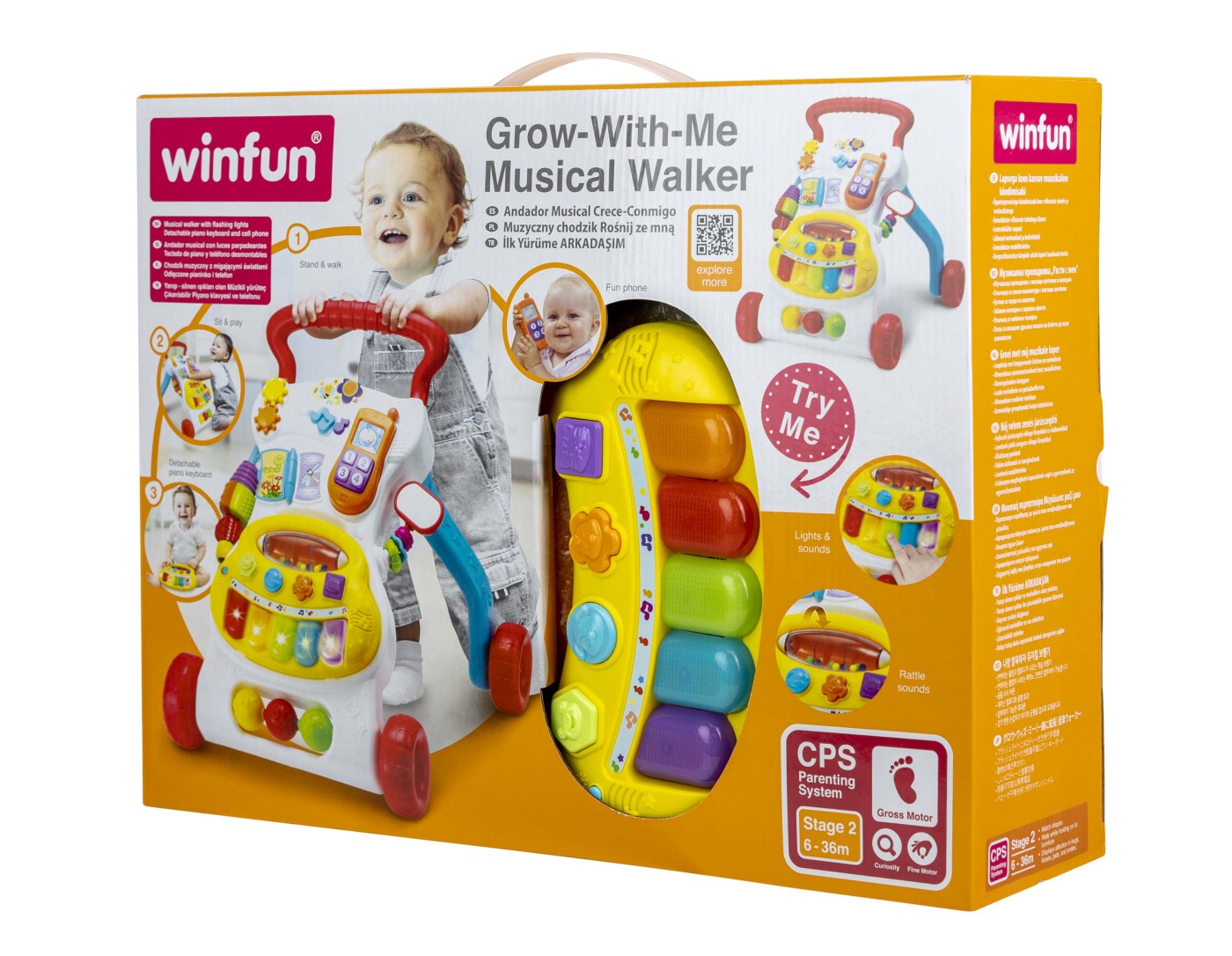 Pianul cu 5 note si lumini intermitente adauga un element de divertisment muzical, incurajand dezvoltarea abilitatilor auditive si a coordonarii mana-ochi. Antemergatorul dispune si de diverse elemente interactive, cum ar fi rotitele si butonul glisant pentru melodii. Acestea ofera ore intregi de distractie si invatare, stimuland curiozitatea si explorarea activa. Cartea cu clapeta este perfecta pentru dezvoltarea abilitatilor motorii fine, in timp ce oglinda sigura pentru bebelusi incurajeaza auto-recunoasterea si explorarea faciala. Zornaitorile si bilele rotative adauga un element suplimentar de joaca, stimuland senzorial copiii prin sunete si miscari.