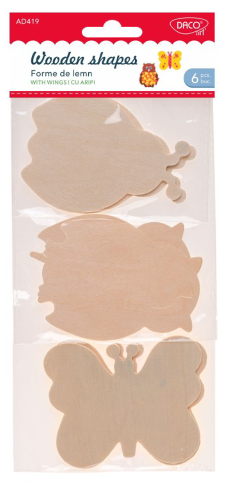 Acest pachet de accesorii craft forme de lemn este perfect pentru a realiza diferite proiecte sau doar pentru a decora pagini de cărți de colorat, albume, sau alte suprafețe.