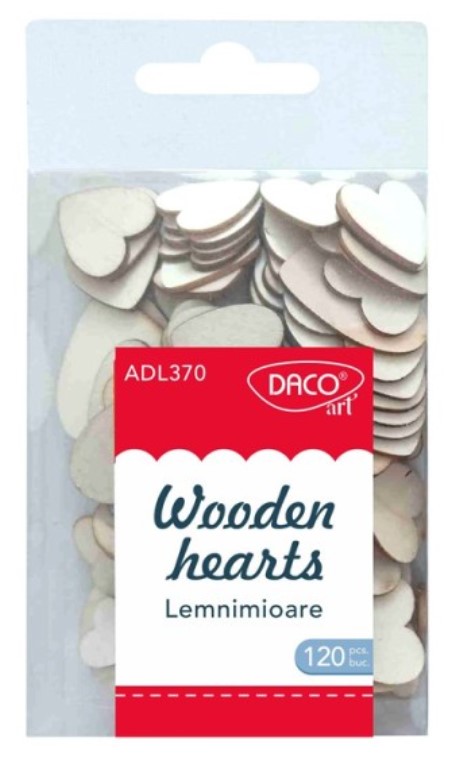 În acest produs nou DACOart, vei găsi inimi din lemn pentru a-ți îndeplini și a conferi mai multă semnificație celor mai variate proiecte de craft. Se pot aplica pe accesorii pentru petrecere, decorațiuni pentru casă, materiale publicitare, planșe educative și pe orice altceva ai în gând. Le poți colora sau păstra în nuanța naturala a lemnului și le poți lipi ușor pe suprafața dorită: lemn, carton, sticlă, metal, material textil, plastic.