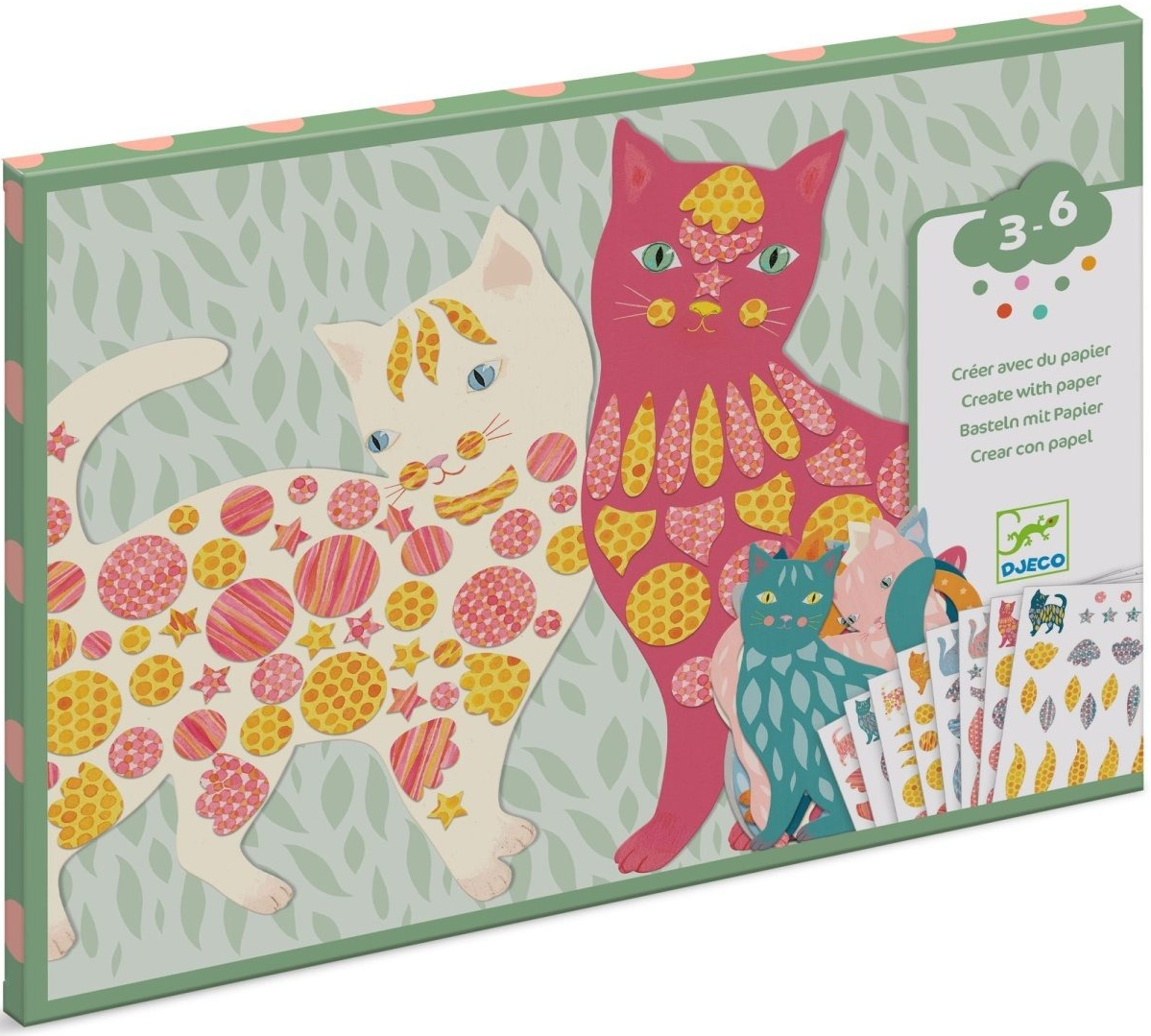 • Conține: 8 forme din carton gros ilustrate cu pisici (21 x 28 cm), 8 coli cu autocolante, broșură color explicativă