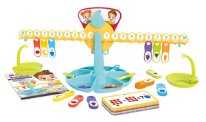 Copiii mai mari vor invata sa numere si sa efectueze operatiile matematice de baza prin joaca! Pentru a gasi raspunsurile la cele 60 de probleme regasite pe cartonase, copilul va atarna greutatile pentru a echilibra balanta si a obtine rezultatul corect. Puteti exersa adunarea, scaderea, inmultirea si impartirea.