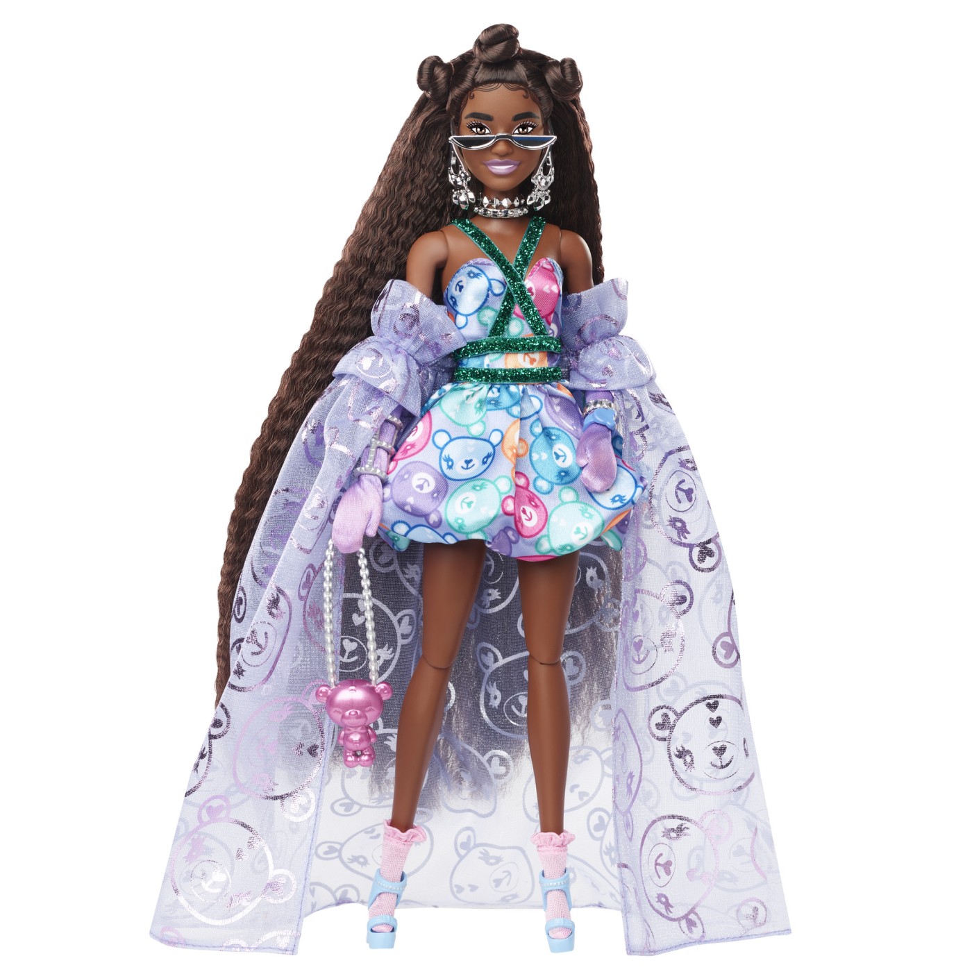 Papusile Barbie Extra FancyTM isi duc look-urile la nivelul urmator in rochii glamuroase, pregatite pentru covorul rosu, cu detalii si accesorii luxoase, precum si un animal de companie care se potriveste cu look-ul lor unic. Pantofi albastri, sosete roz, ochelari de soare micro metalici, manusi mov, o geanta in forma de inima si multe bijuterii luxoase si stratificate inspira autoexprimarea si distractia povestirii.