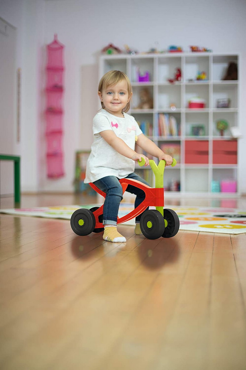 Babytaxiul pentru copii, de la producatorul german BIG, este un accesoriu minunat pentru miscare sub forma unei motociclete, potrivit pentru copii de la 18 la 36 luni. Babytaxiul este realizat in culori moderne de verde-rosu, care vor fi pe placul celor mici. Designul original si sportiv, asigura ca cei mici se vor juca cu acesta ore intregi. Scaunul babytaxiului BIG este certificat in forma ergonomica, asa ca prichindelul dvs. va sta foarte confortabil pe el. Babytaxiul Flippi este realizat din plastic de inalta calitate, durabil si rezistent. Datorita dimensiunilor compacte, este potrivit pentru utilizarea in interior si in exterior. Greutatea motocicletei pentru copii este de 0,8 kg si este dotata cu roti stabile din plastic, pe care se pot baza micutii soferi. Manerele de pe babytaxiu sunt confortabile, adaptate pentru mainile delicate ale copiilor. Dimensiunile babytaxiului sunt 49*21*36 cm, iar inaltimea totala este de 36 cm iar lungimea de 49 cm. Motocicleta pentru copii aduce copilasului dvs. nu numai bucurie ci si distractie, ci ii ajuta si sa-si dezvolte abilitatile motorii. Scaunul cu forma speciala de pe motocicleta Flippi, face ca micutul sa steacu picioarele larg deschise, lucru care promoveaza dezvoltarea corecta a articulatiilor soldului. Cu acest babytaxiu, copilul isi dezvolta imaginatia si creativitatea, isi imbunatateste abilitatile motorii si isi consolideaza muschii intregului corp. Aspectul sportiv de inalta calitate al babytaxiului BIG garanteaza copiilor ore pline de distractie. BIG este o companie germana recunoscuta, care se ocupa cu fabricarea jucariilor din plastic de calitate pentru copii. Jocurile marcii germane BIG se pot mandri cu premii internationale. Sigla marcii BIG este un bivol care simbolizeaza puterea, rezistenta si robustetea - si chiar acestea sunt caracteristicile marcii. Principalul aspect al marcii BIG este siguranta jucariilor, iar materialele folosite nu sunt doar de calitate si reciclabile, dar sunt si inofensive pentru sanatate. Design inconfundabil, tehnici de productie moderne si jucarii care indeplinesc toate nevoile copiilor dvs. - acesta este brandul BIG.