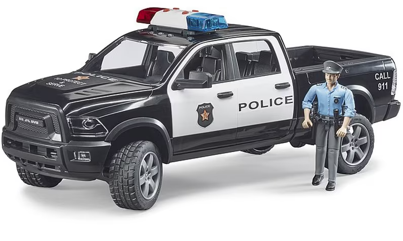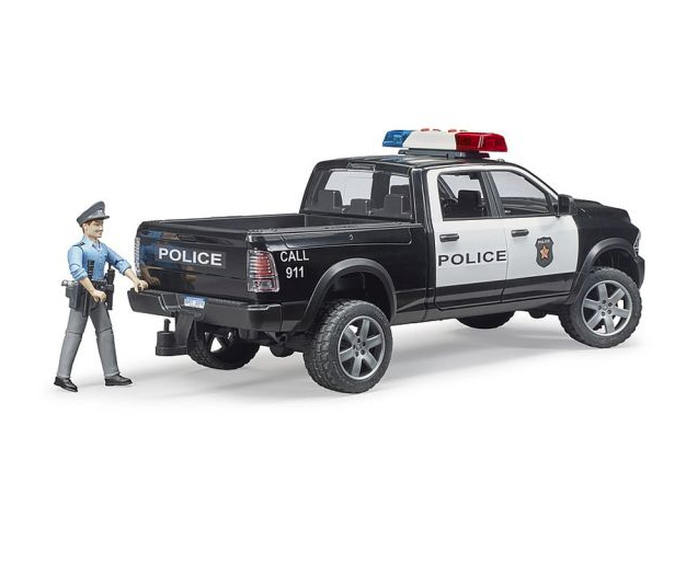 Fortele de politie de la BRUDER sunt imbunatatite. Serviciile de urgenta BRUDER vor putea acum sa supravegheze terenul greu accesibil in afara limitelor orasului, datorita unui pick-up 4x4 de politie. Vehiculul de serviciu se bazeaza pe masinaria familiara RAM 2500 si are un design de o culoare atragatore si izbitoare, tipic american, precum si un modul de lumina si sunet montat pe acoperis. La fel ca originalul jucaria are o cabina pentru echipaj cu patru usi. Toate usile se deschid pentru a gazdui patru figurine Bworld.