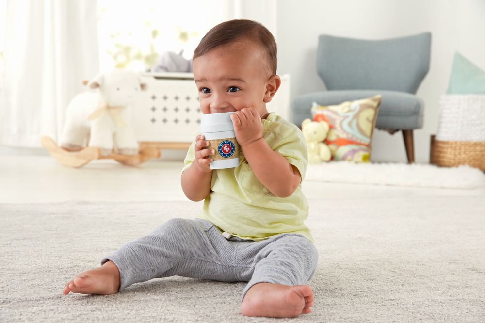 Jucaria de dentitie Fisher Price in forma de pahar de cafea ofera distractie senzoriala pentru micutul tau. Se poate folosi de la 3 luni, are capacul masticabil si margele colorate zornaitoare.