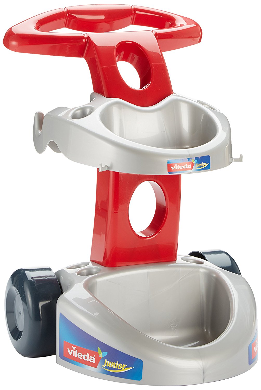 Setul contine un mop cu galeata, matura, faras si suport pentru accesorii.