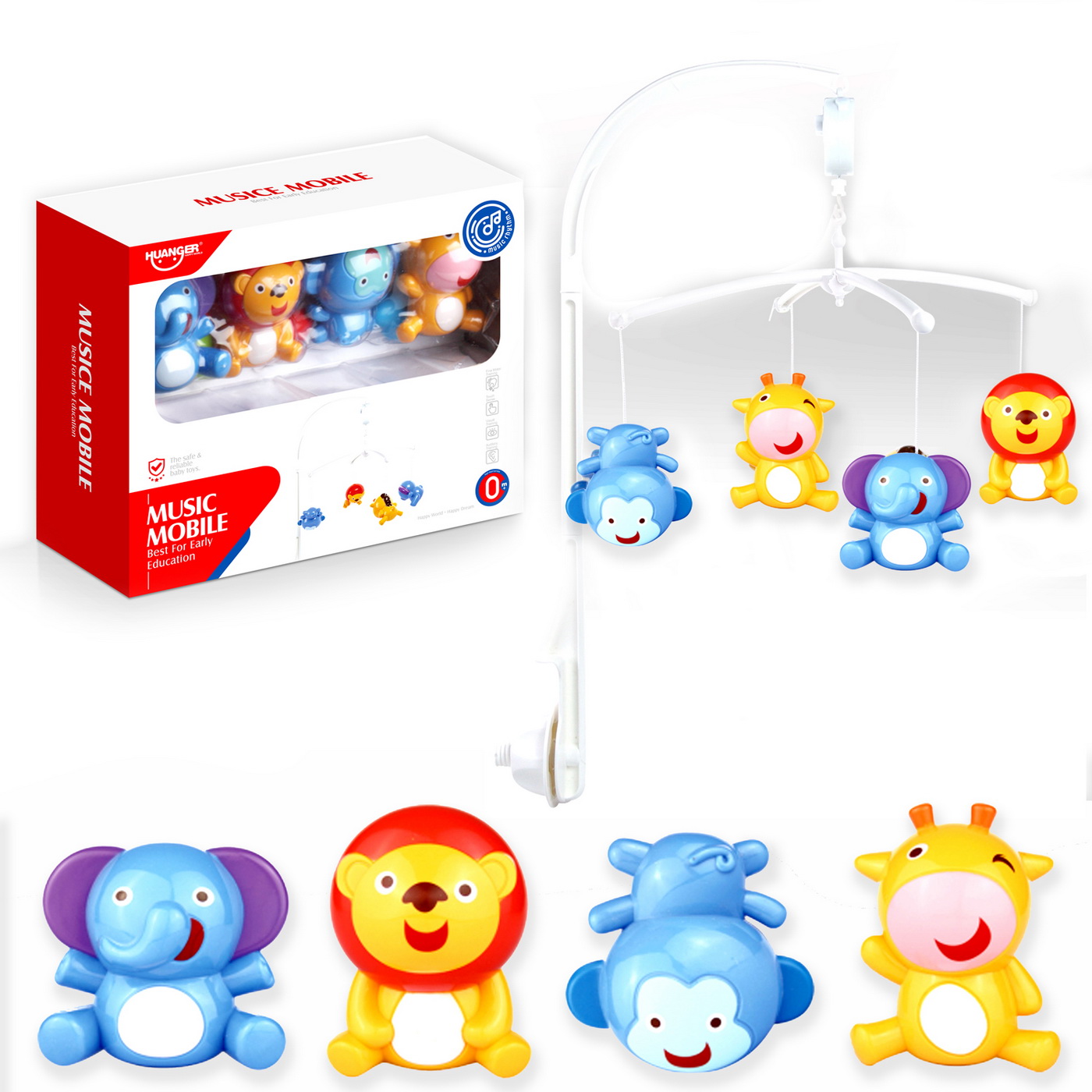 Caruselul muical pentru patut se fixeaza in deplina siguranta pe marginea patutului printr-un sistem de prindere cu tampon de silicon si rotita de blocare. Caruselul are buton on / off. El se roteste prin invartirea cheitei. Bara de sustinere se roteste usor pentru a permite copilului sa ajunga cu usurinta la animalutele agatate de bratele caruselului. Prin astfel de actiuni jucaria este destinata sa dezvolte perceptia vizuala si auditiva si coordonarea dintre maini si ochi. Formele speciale si culorile vii incurajeaza copilul sa exerseze si sa se joace stimuland astfel dezvoltarea.