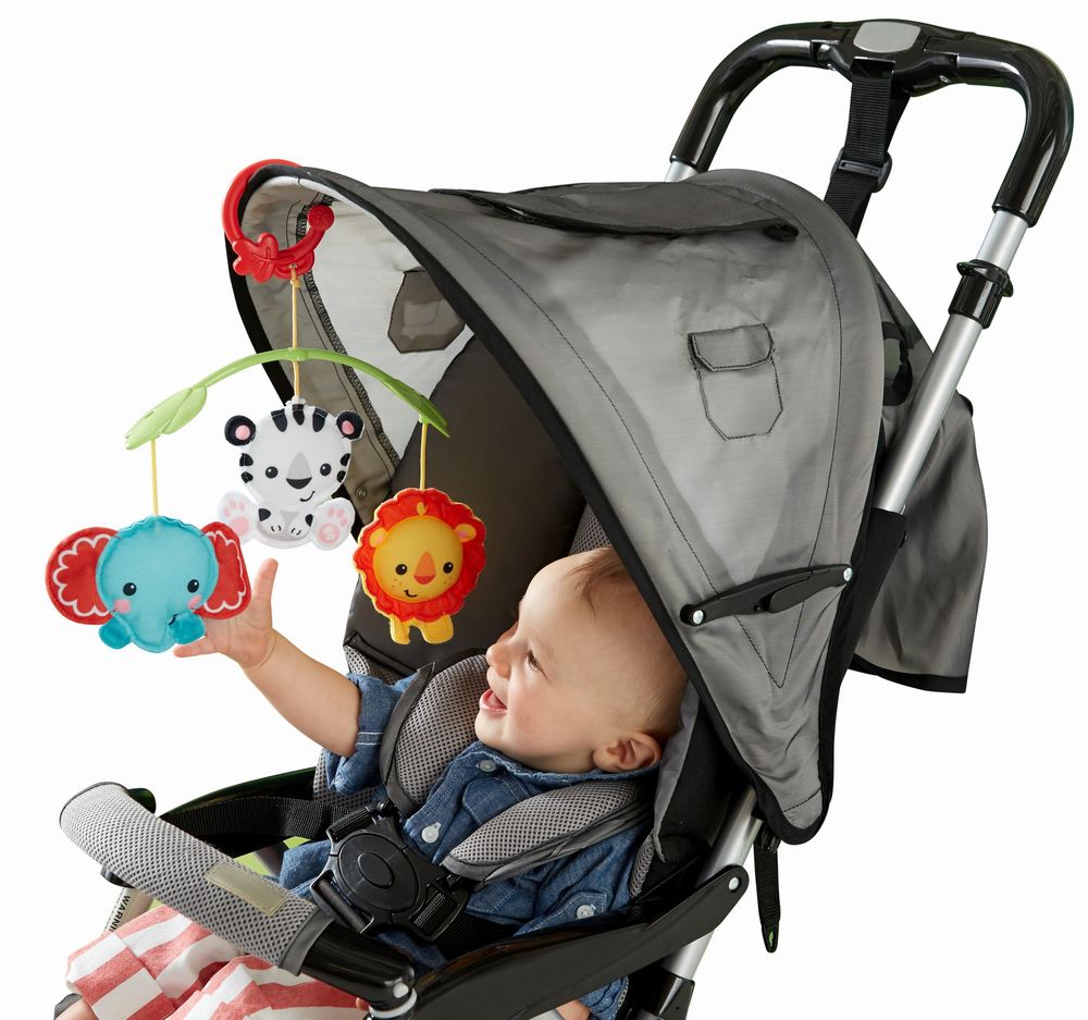 Caruselul 3 in 1 Rainforest Friends (Prietenii din Padure) poate fi folosit atasat la patut, atasat la caruciorul copilului sau ca jucarie muzicala cand copilul mai creste. Dispune de 20 de minute de muzica linistitoare, caruselul isi incetineste viteza de rotatie pe parcursul a 20 de minute pana se opreste, pentru a incetini stimularea vizuala inainte de culcare. Jucariile caruselului se detaseaza si pot fi instalate pe carucior. Cand papagalul este detasat de la carusel, acesta se transforma intr-o jucarie muzicala activata de bebelus. Ajuta la dezvoltarea capacitatii senzoriale, sigurantei si bucuriei.