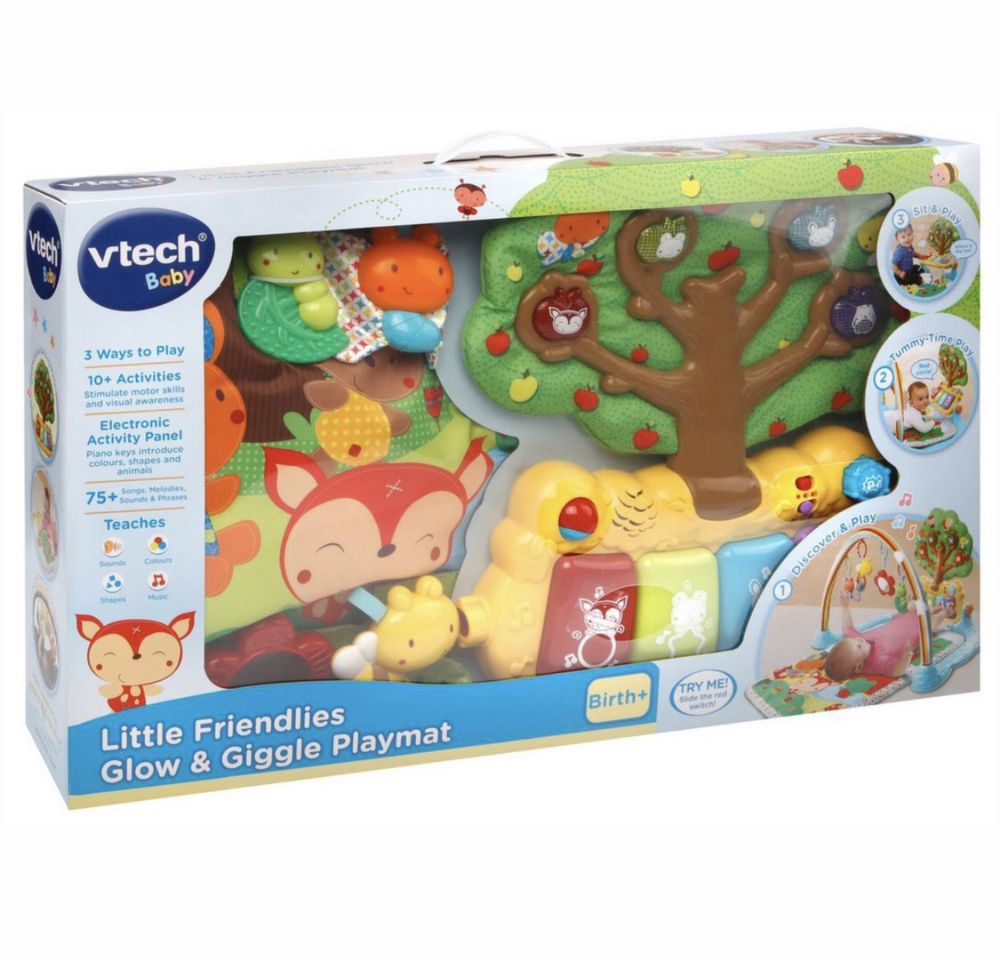 Aceasta fumoasa paturica are o arcada colorata curcubeu cu 3 locuri pentru agatarea unei oglinzi pentru descoperirea de sine, un fluture marioneta cu aripi incretite pentru dezvoltarea senzoriala si o omida pentru linistirea gingiilor bebelusului. Pe langa aceste caracteristici setul are o saltea moale, captusita si acoperita cu personaje populare mici pentru a face timpul de joaca foarte confortabil. Include un pian cu activitati detasabil pe tastele caruia bebelusul poate sa apese intins pe spate sau sezand si sa invete animale, forme, sunete si culori in cele 3 moduri de joc. Copacul mare atrage bebelusul cu merele si iluminarea sa magica. Are 20 melodii si 6 cantece de karaoke.