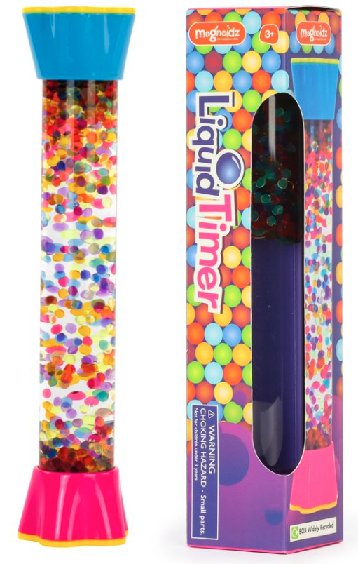 Cronometru lichid - Magnoidz este o jucărie senzorială lichidă, creată pentru a oferi o experiență vizuală captivantă. Când este întoarsă, lichidul curge încet, oferind un efect calmant și relaxant.