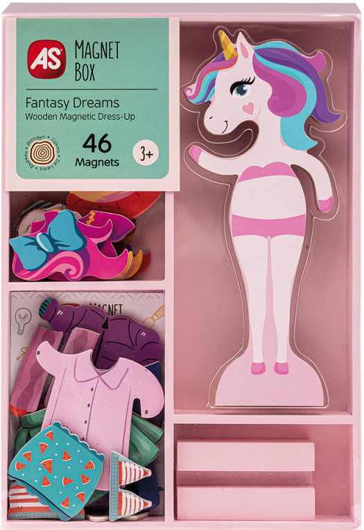 Unicornul magnetic din lemn Fantasy Dreams este rapid si usor de asezat pe baza sa din lemn si va asteapta pentru a juca fara oprire. Incurajeaza-ti copilul sa se imbrace cu unicornul si sa-ti spuna o poveste despre cum isi alege si isi aduna hainele.