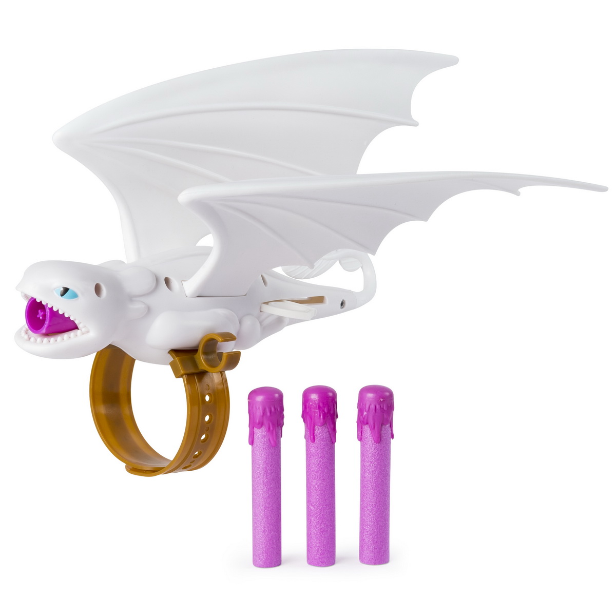 Lansatorul de proiectile se prinde perfect pe mana. Proiectilele sunt create dintr-o spuma presata. Contine 3 proiectile. Ele sunt create la cele mai inalte standarde de siguranta. Se pot folosi si alte proiectile de la alte jucarii.