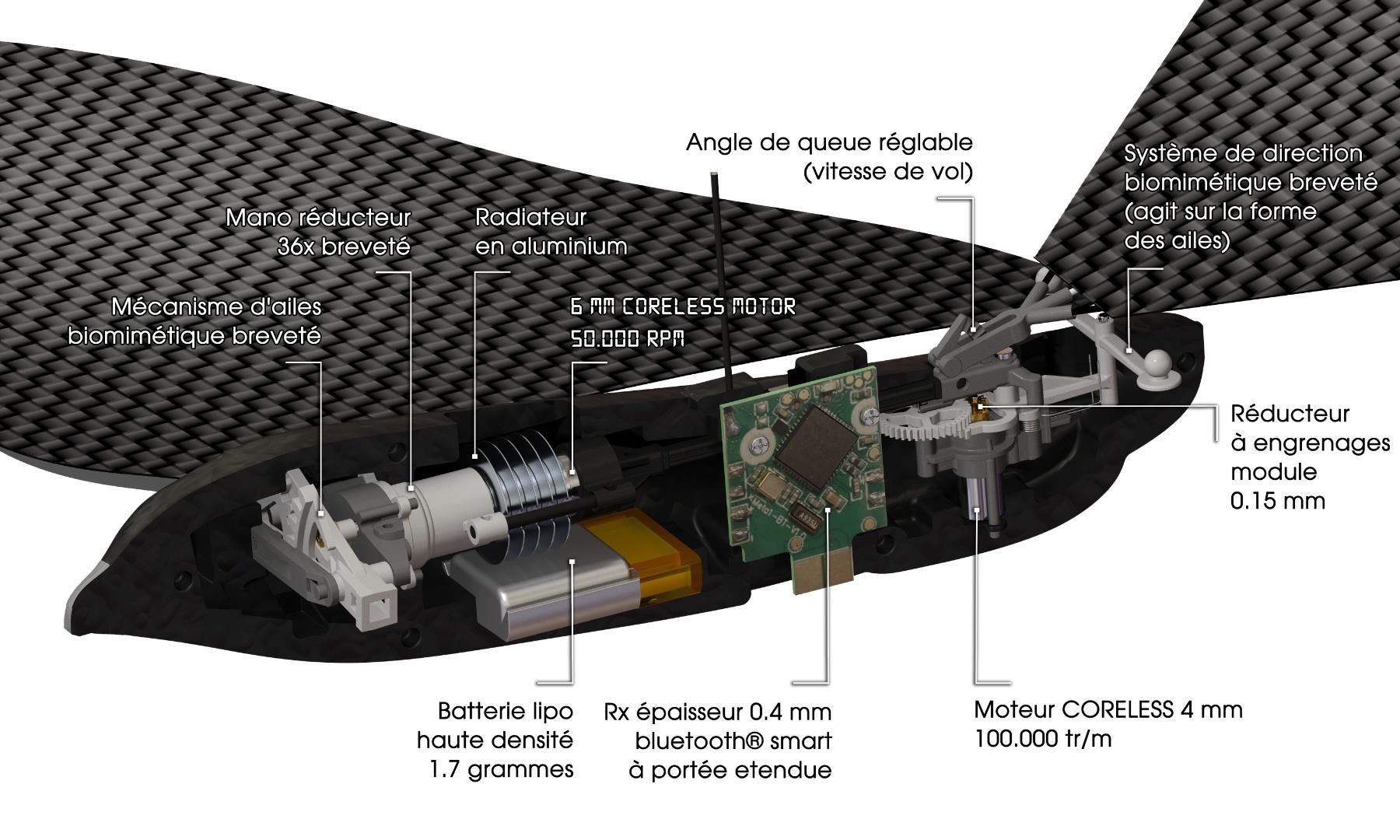 Echipat cu aripi flexibile din fibră de carbon și polimeri cu cristale lichide și un corp indestructibil din spumă, MetaBird nu se teme nici de cădere și nici de impact, indiferent de obstacol.