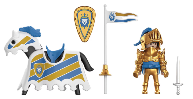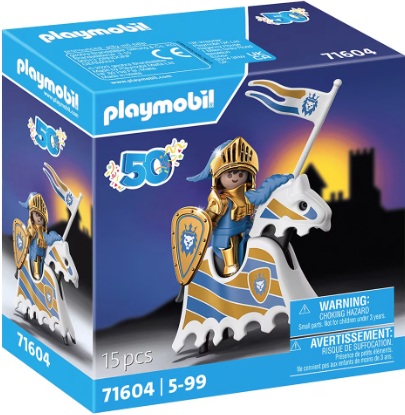 Din 1974, figurinele PLAYMOBIL incanta copiii din intreaga lume, inspirand aventuri imaginative. Pentru a onora acest aniversar, va prezentam exclusivul Cavaler PLAYMOBIL de Aniversare pe Cal, impodobit in armura aurie, cu o lance si scut, si, desigur, cu zambetul iconic PLAYMOBIL. ‘Alaturati-va Petrecerii’ si celebrati impreuna cu noi 50 de ani de povestiri! Asigurati-va ca acest aniversar ramane memorabil pentru cei mici, adaugand in colectia lor acest Cavaler Aniversar PLAYMOBIL deosebit. Potrivit pentru spiritul aventuros al copiilor, acest set incurajeaza jocul creativ si decoreaza orice camera cu un strop de magie si istorie.