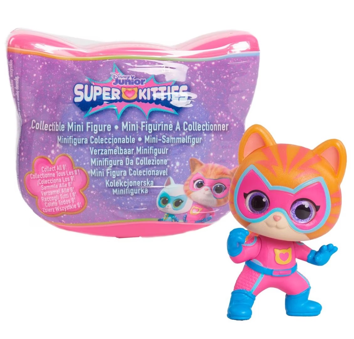 Colecționabile miaunate: Pornește în aventuri pline de acțiune cu figurinele de colecție Disney Junior SuperKitties.