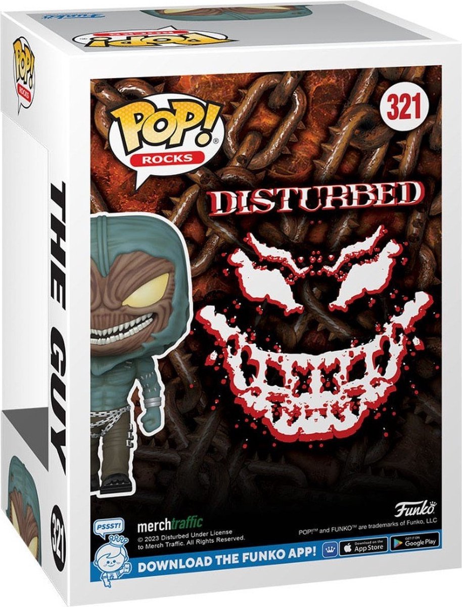 Tipul, un chip terifiant și misterios cu un zâmbet larg. Această imagine este adesea folosită ca chip al trupei pe coperți de albume, postere și produse. The Guy a devenit acum un reper inconfundabil pentru trupă și fanii săi. Disturbed este cunoscut pentru versurile lor puternice și emoționante, care explorează teme de luptă interioară, sănătate mintală și probleme sociale.