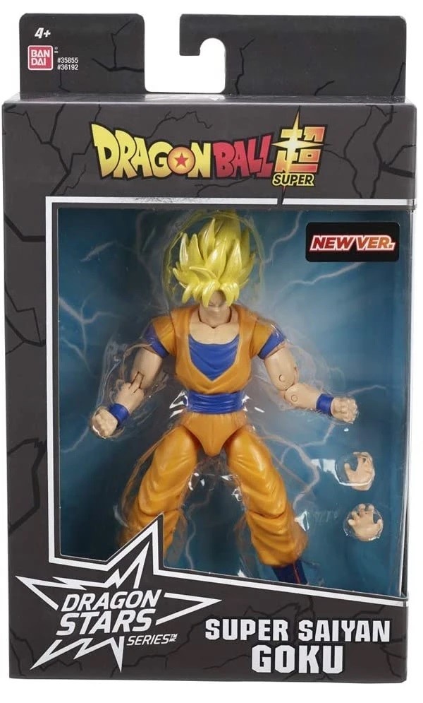 Figurină articulată cu personajul Super Saiyan Goku din seria manga Dragon Ball Super.