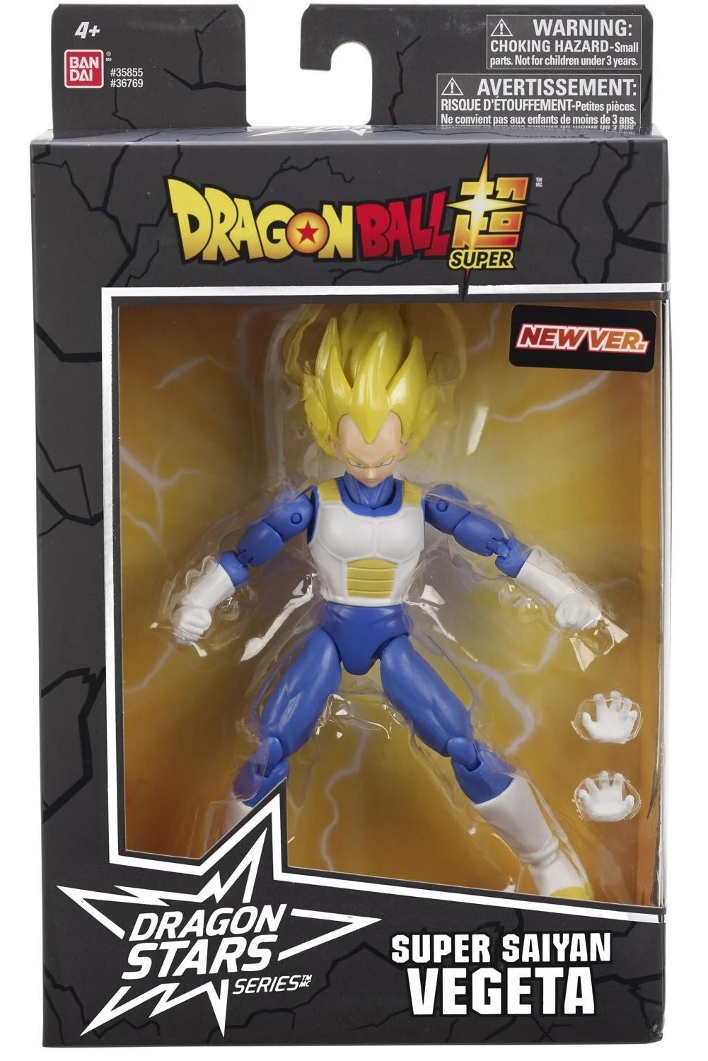 Figurină articulată cu personajul Super Saiyan Vegeta din seria manga Dragon Ball Super.