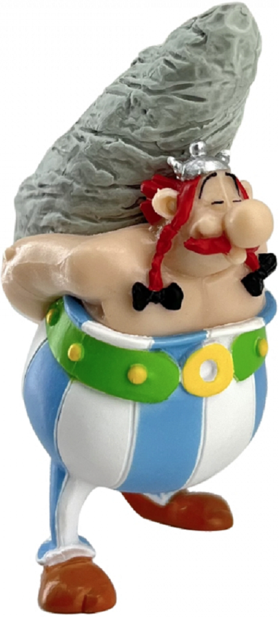 Frumoasă figurină Plastoy bazată pe desenele și benzile desenate clasice despre Asterix și Obelix: Obélix purtând un menhir.