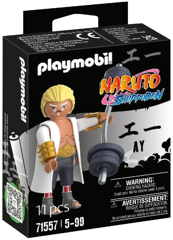 Acest set Playmobil prezinta personajul Raikage Ay din Naruto Shippuden, insotit de haltere si bratari pentru brate. Pentru o expunere sigura, figurina poate fi plasata pe suportul inclus.