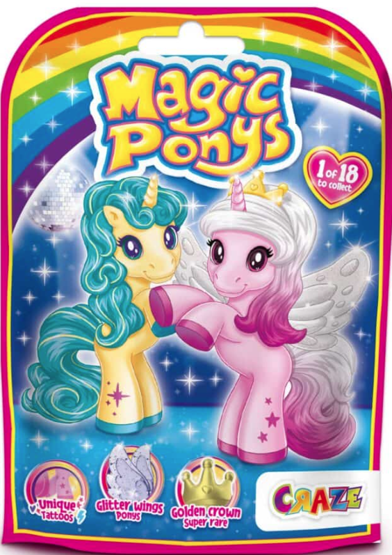 La capatul unui curcubeu fermecat se afla PONYDALE, un taram magic unde toti poneii magici traiesc si prospera. Nu este un curcubeu obisnuit, este sursa puterii care se afla in PONYDALE insusi. La capatul Lacului Curcubeu se afla Liceul Magic al lui PONYDALE. Toti poneii magici merg la scoala pentru a invata cum sa-si controleze puterile si darurile si cum sa-si faca frumosul tinut sa infloreasca. Liceul Magical este impartit in 3 case. Leaf House, Light House si Sky House. Fiecare casa se bazeaza pe anumite valori si poneii magici traiesc dupa aceste principii. Leaf House este pentru cei intelepti, Light House pentru cei loiali si protectori, in timp ce Sky House este pentru poneii magici cu aripi stralucitoare care pot zbura si a caror valoare cea mai mare este libertatea. CRAZE dezvolta, proiecteaza si distribuie jucarii inovatoare, creative si produse la moda pentru copii si tineri din toata Europa, chiar aici, in inima micului oras Karlsruhe. Productia include de asemenea produse cu licenta cunoscute, cum ar fi BIBI si TINA, FIREMAN SAM, DISNEY FROZEN, CARS sau DRAGONS DREAMWORKS. Designul, creativitatea, calitatea si siguranta, reprezinta caracteristici ce definesc produsele CRAZE. Compania premiata international – cu numeroase premii, CRAZE este una dintre companiile cu cea mai rapida crestere din industria germana de jucarii, cu o distributie larga in toata lumea Produse testate, certificate si auditate, non toxice Gama larga de produse