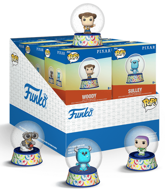 Agită-ți colecția cu aceste Mini Globuri exclusive Disney Pixar. Fiecare glob de zăpadă prezintă unul dintre personajele tale animate preferate! Îi poți găsi pe Woody, Buzz Lightyear, WALL-E și Sulley. Colecționează-le pe toate! Globurile au aproximativ 5,6 cm înălțime. Un glob de colecție per pachet.