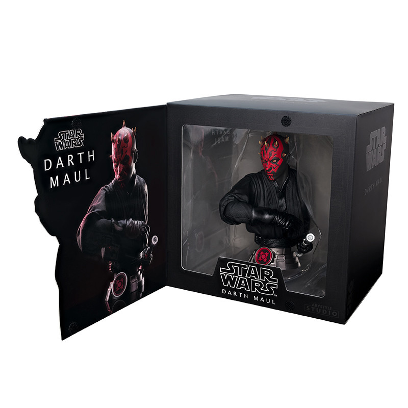 Îmbrățișează furia părții întunecate cu acest bust Darth Maul remarcabil de detaliat, ucenicul înfricoșător al lui Darth Sidious! Al doilea articol din colecția SB6 a ABYstyle Studio, această figură la scară 1/6 surprinde fidel intensitatea și brutalitatea Lordului Sith, un maestru al sabiei cu două lame. De la privirea sa amenințătoare la tatuajele distinctive Zabrak, fiecare detaliu al lui Darth Maul a fost creat cu meticulozitate, dezvăluind esența furiei și puterii sale. Baza acestui bust prezintă emblema Ordinului Sith, un simbol al puterii neînduplecate și al ambiției distructive care îi conduce pe adepții săi.