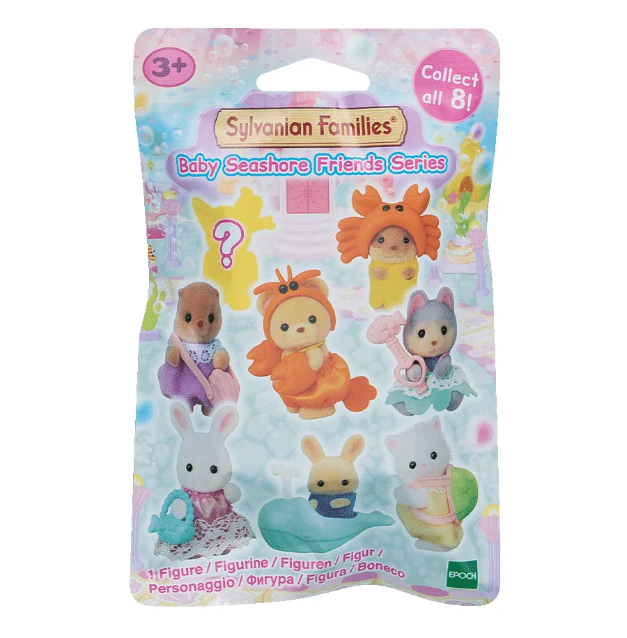 Figurina-surpriza - Sylvanian Families - Pe Litoral prezintă câte unul dintre personajele seriei Sylvanian Families, alături de câte unul dintre elementele specifice litoralului. În fiecare pachet, vei descoperi câte unul dintre cei 8 bebeluși ai familiei Sylvanian.
